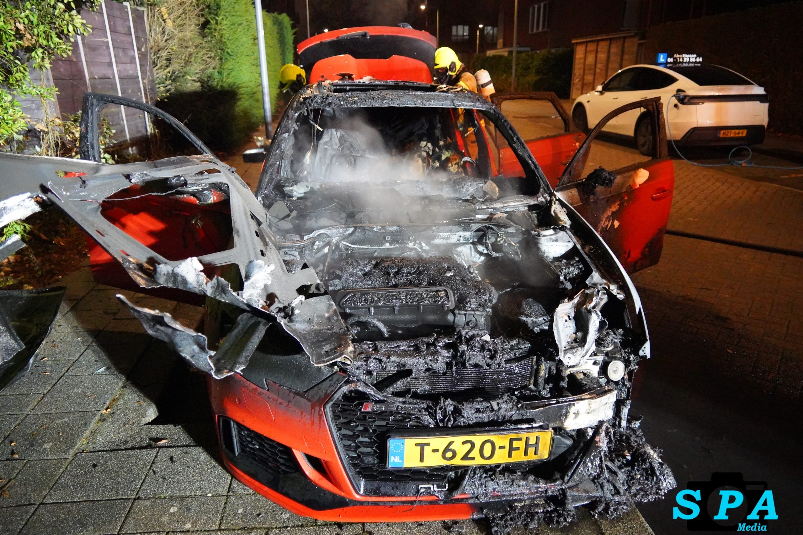 De brandweer had het vuur snel onder controle, maar kon niet voorkomen dat de auto als total loss moet worden beschouwd. Van het voertuig bleef weinig over.